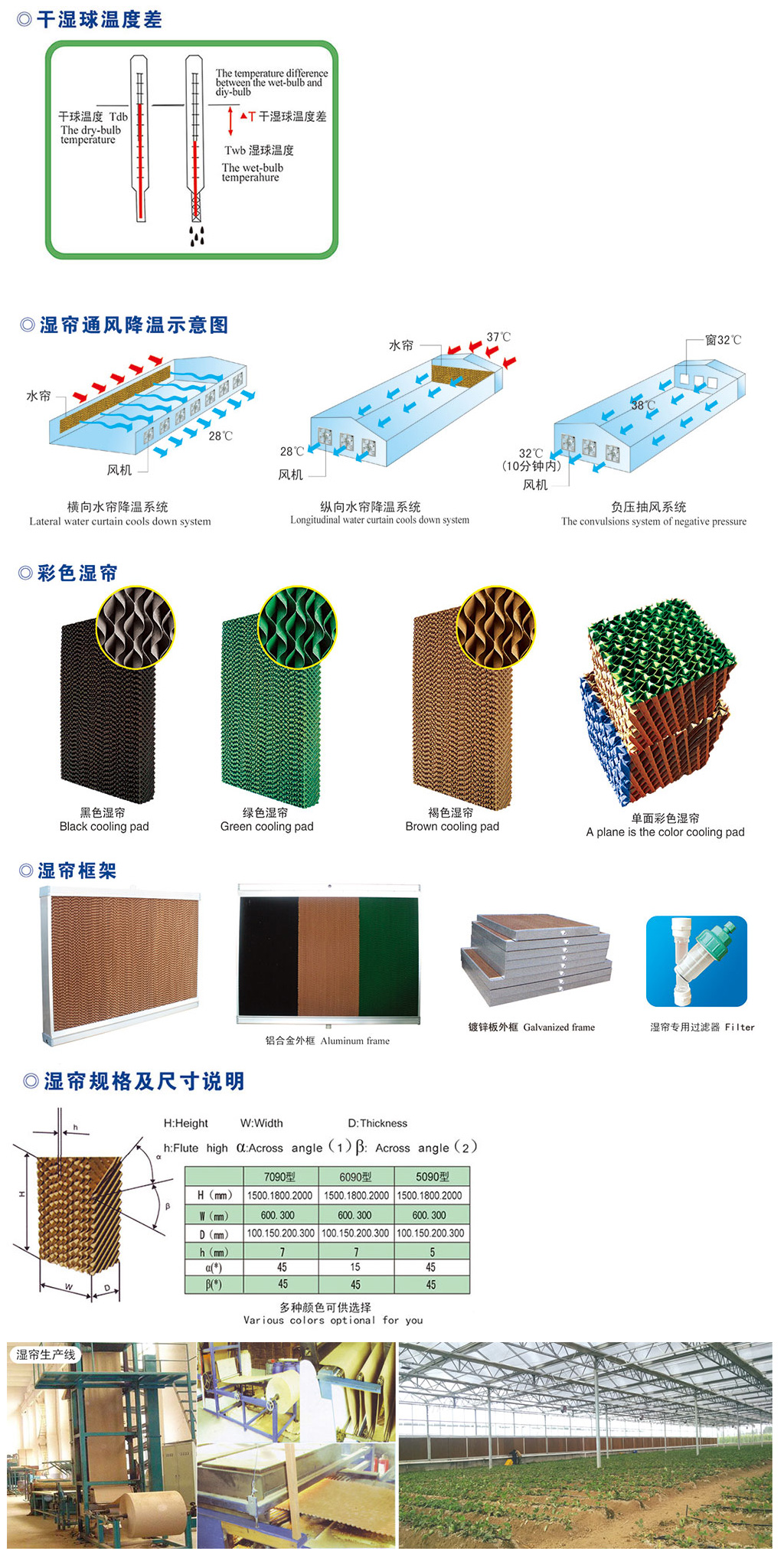 湿帘降温系统的降温过程是在基核心纸垫内完成的。在波纹的纤维纸表面有层薄薄的水膜,当室外干热空气被风机抽吸穿过纸垫时水膜上的水会吸收空气中的热量进而蒸发在水蒸气,这样经过处理后的凉爽湿润的空气就进入室内了这自然的过程犹如风吹过水面样。
